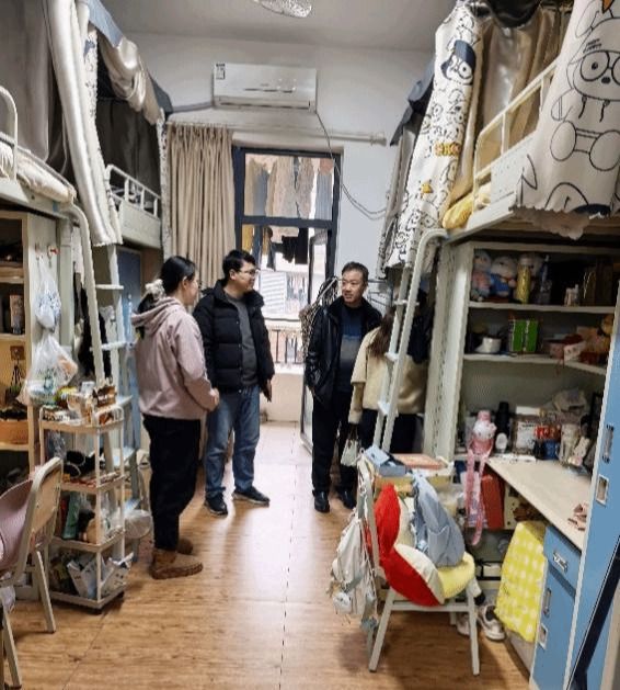 走访过程中,学院领导、老师与同学们亲切交谈,细致询问同学们的学习进度、期末复习安排、生活起居等情况,并耐心倾听大家对专业学习、校园生活等方面的意见和建议。提醒同学们合理安排时间,注意劳逸结合,同时叮嘱大家增强安全意识,遵守宿舍管理规定,希望同学之间团结友爱,互帮互助,加强沟通交流,共同成长进步,营造安全、温馨、和谐、融洽的宿舍氛围。
